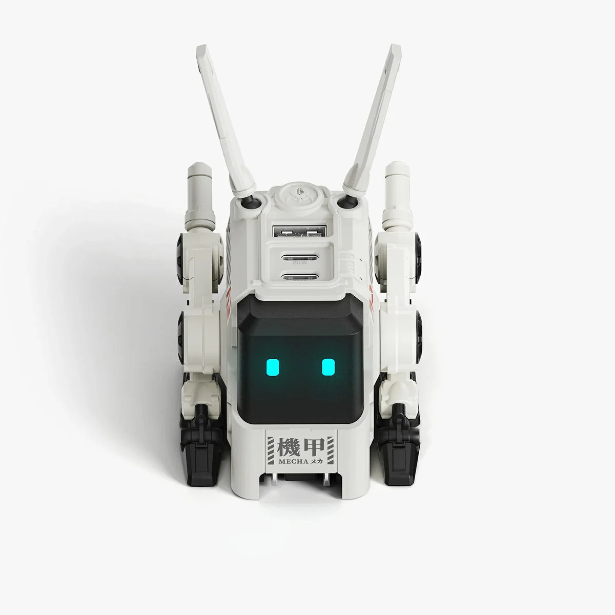 - Transformable design with mecha walker legs and a concealed power plug for a stylish, functional desktop companion